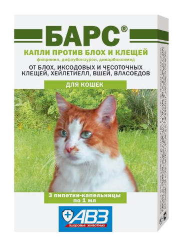 Барс. Капли против блох и клещей . Лекарственное средство при арахно-энтомозах кошек.