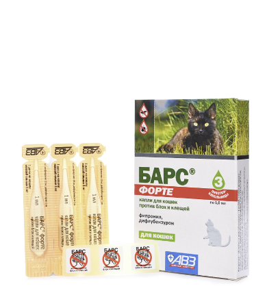 Барс Форте. Капли против блох и клещей . Лекарственное средство при арахно-энтомозах кошек.