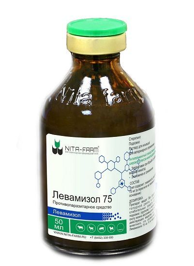 NITA-FARM Нита-Фарм Левамизол 7,5% раствор для инъекций для сельскохозяйстненных животных и собак 50 мл.