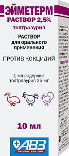 АВЗ Эйметерм 2,5% раствор для орального применения против кокцидий 10 мл.