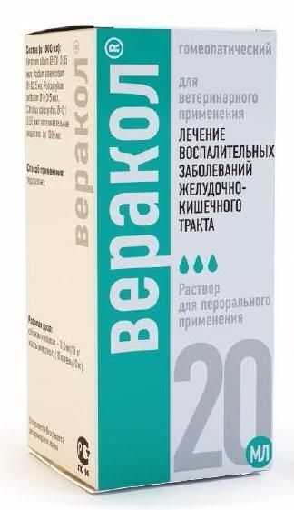 Веракол. Раствор для перорального применения. Гомеопатический препарат для лечения воспалительных заболеваний желудочно-кишечного тракта у сельскохозяйственных и мелких домашних животных.