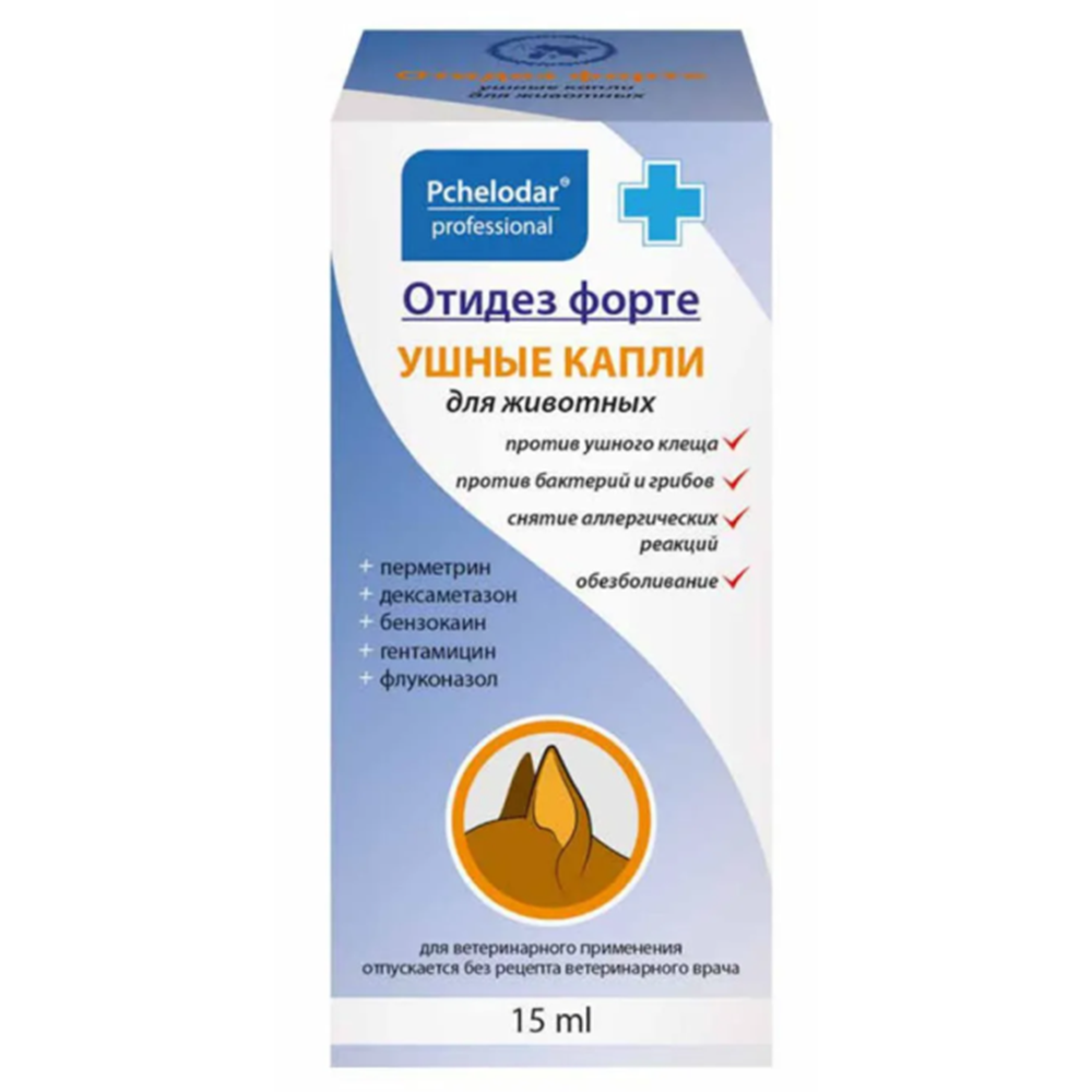 Рекомендации по применению: перед применением флакон Отидез необходимо тщательно встряхнуть. Провести гигиеническую обработку, очищая ушные раковины от поверхностных корок и струпьев тампоном, смоченным небольшим количеством препарата. Препарат закапывают в оба уха: кошкам, пушным зверям и собакам мелких пород по 1 — 3 капли, собакам средних пород — 4 капли, собакам крупных пород по 5 -6 капель 2 раза в сутки, помассировать у основания уха в течение 5-10 дней.