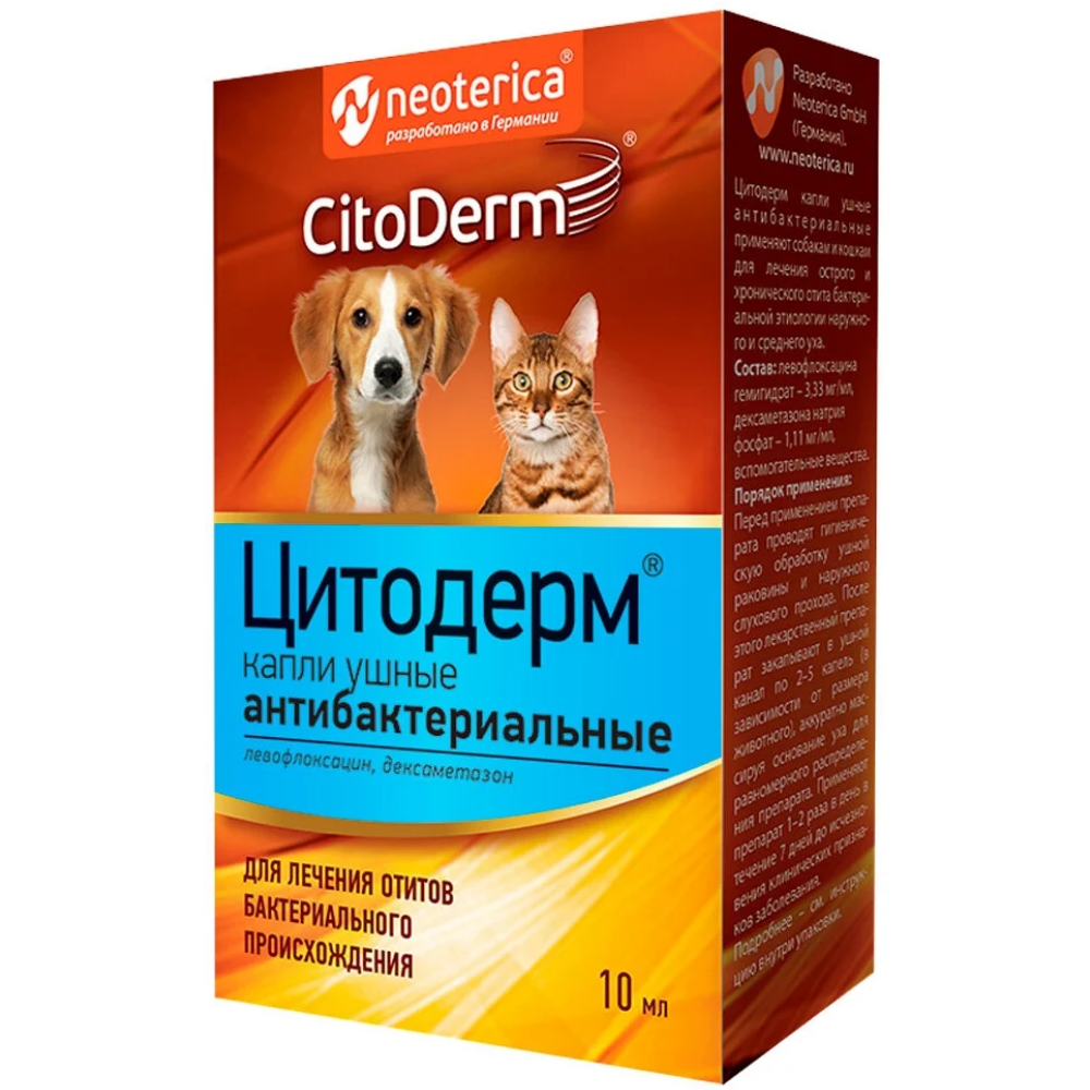 -Цитодерм капли ушные антибактериальные для собак и кошек 10 мл.