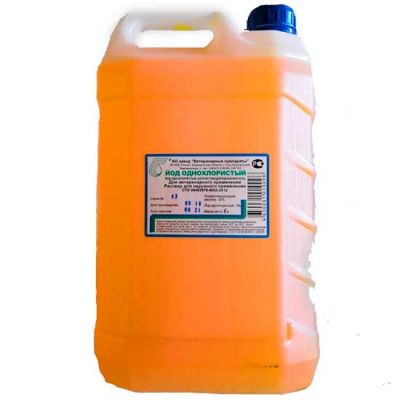 Показания к применению: йод однохлористый назначают для влажной дезинфекции, дезинвазии поверхностей животноводческих, птицеводческих помещений и всего оборудования в них, холодильных камер, обеззараживания скорлупы яиц, а также для аэрозольной дезинфекции воздуха животноводческих и птицеводческих помещений, лечения животных, пораженных стригущим лишаем и преддоильной обработки вымени коров.