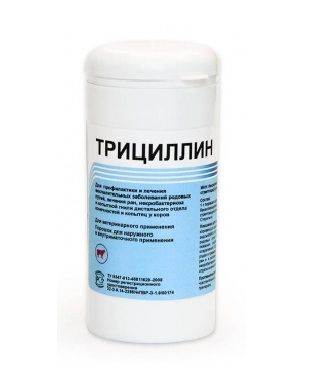 Трициллин. Порошок для профилактики и лечения воспалительных заболеваний родовых путей, лечения ран, некробактериоза и копытной гнили дистального отдела конечностей и копытец у коров.