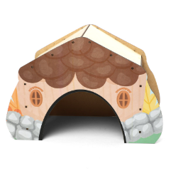 Несколько отверстий, в том числе большой вход, обеспечивают свободный доступ внутрь изделия. Домик выполнен из фанеры высшего качества.