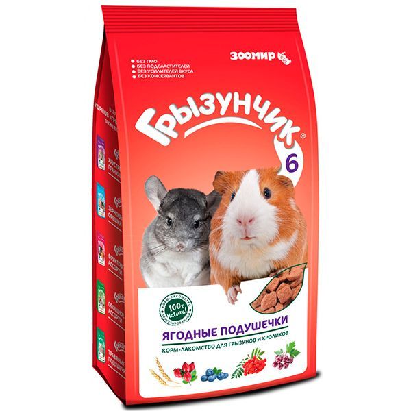 Лакомство для грызунов ГРЫЗУНЧИК 6 Ягодные подушечки 200 гр