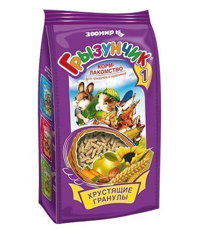 Корм-лакомство для грызунов и кроликов "Грызунчик- 1 хрустящие гранулы" - гранулированный корм-лакомство для хомяков, морских свинок, мышей, крыс, шиншилл, дегу, песчанок, белок и других декоративных грызунов и кроликов.