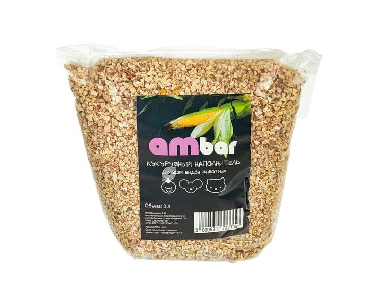 -Кукурузный наполнитель для мелких грызунов и рептилий Ambar Амбар 3 л