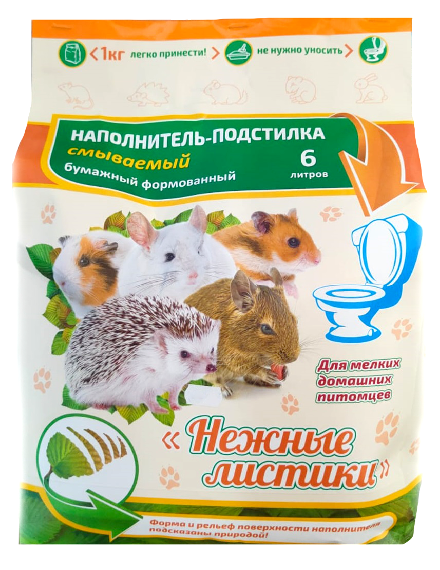 Наполнитель для мелких животных Нежные листики смываемый бумажный 7л