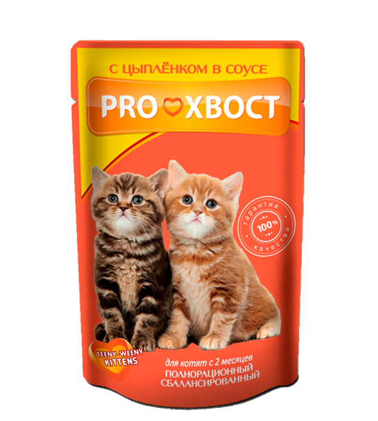 Корм для котят PROХВОСТ Прохвост с цыпленком в соусе 85 г пауч**