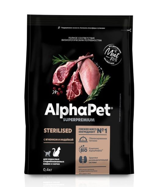Корм для кошек AlphaPet Sterilised АльфаПет для стерилизованных с ягненком и индейкой 400 г сух. пакет**