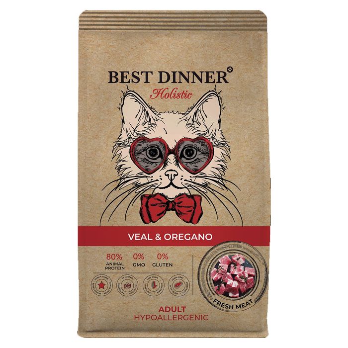 Корм для кошек Best Dinner Holistic Hypoallergenic Бест Диннер Холистик для склонных к аллергии телятина с орегано 1,5 кг сух. пакет**