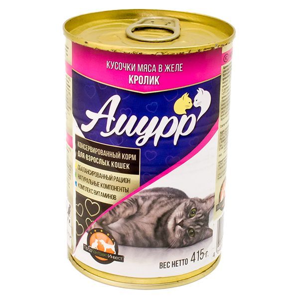 Корм для кошек Амурр с кроликом в желе конс. 415 г ж/б**