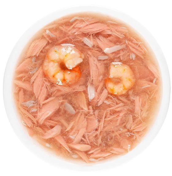Кусочки тунца с нежными креветками - еда для настоящих аристократов! Витамины, минералы и таурин - это лишь приятное дополнение к изысканному блюду для котов и кошек всех пород.