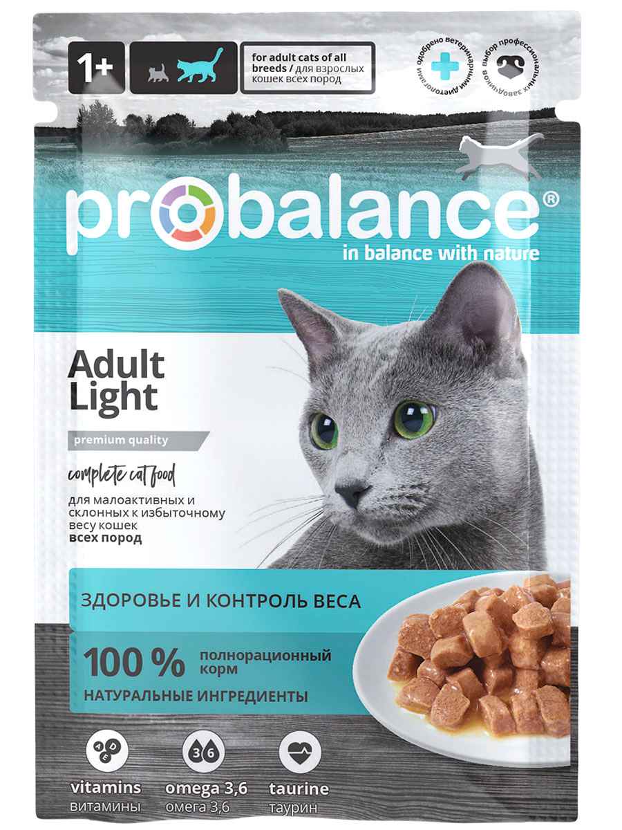 Корм для кошек ProBalance Light Пробаланс для малоактивных и склонных к избыточному весу 85 г пауч**