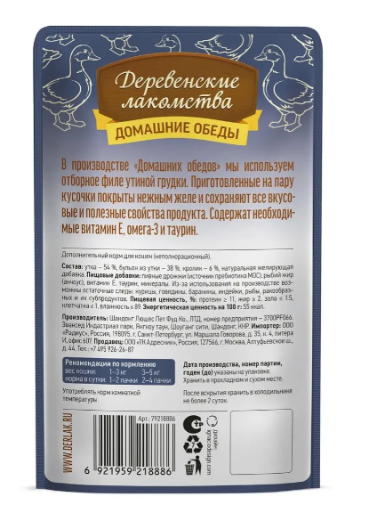 Натуральная, обогащенная витаминами и минералами продукция "Деревенских лакомств" изготовлена с учетом сбалансированного питания из качественных, безопасных и тщательно подобранных ингредиентов.