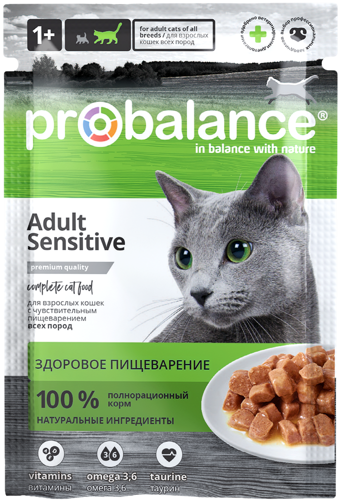 Корм для кошек ProBalance Sensitive Пробаланс для чувствительного пищеварения 85 г пауч**