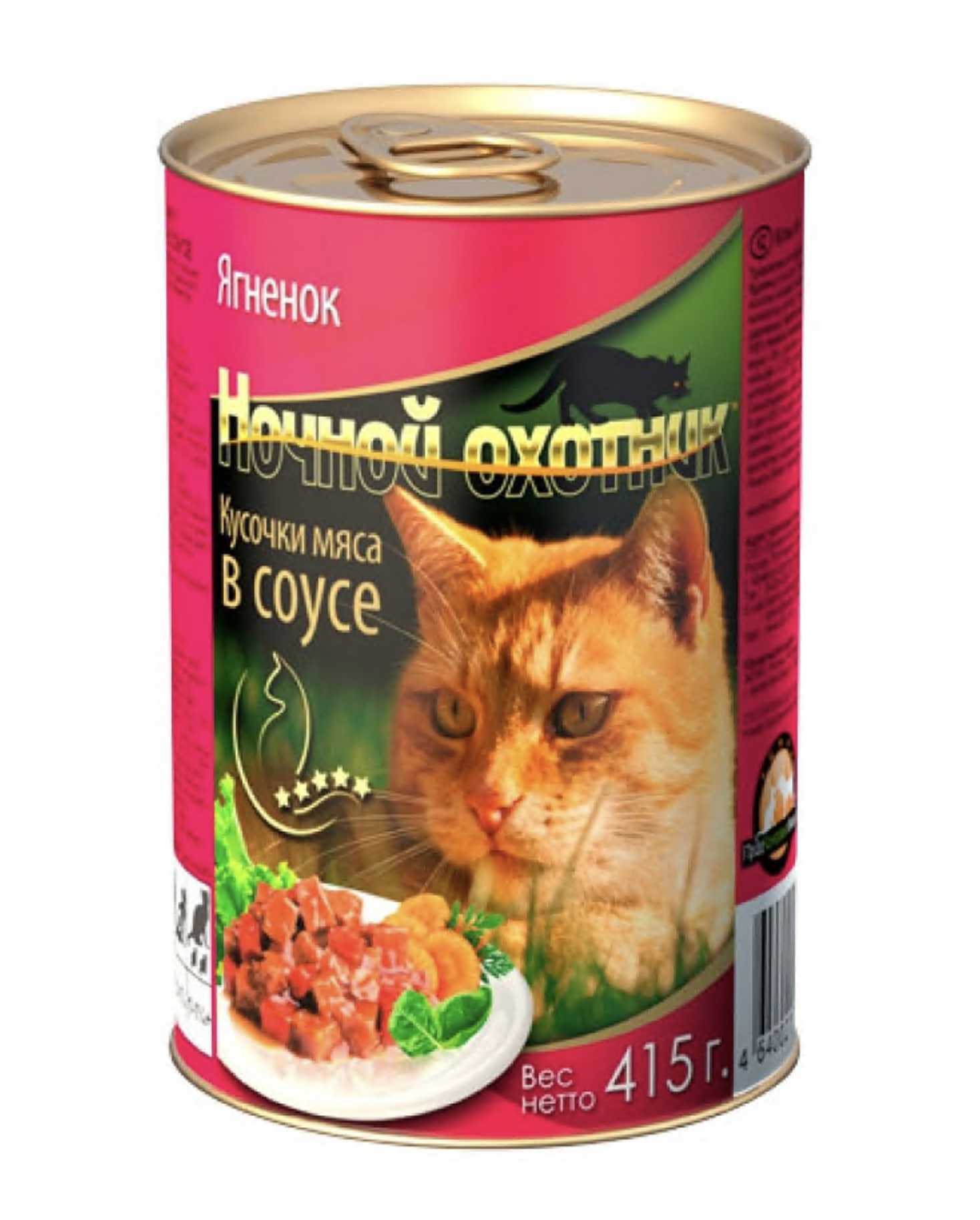 Корм для кошек Ночной охотник ягненок кусочки мяса в соусе конс. 415 г ж/б**