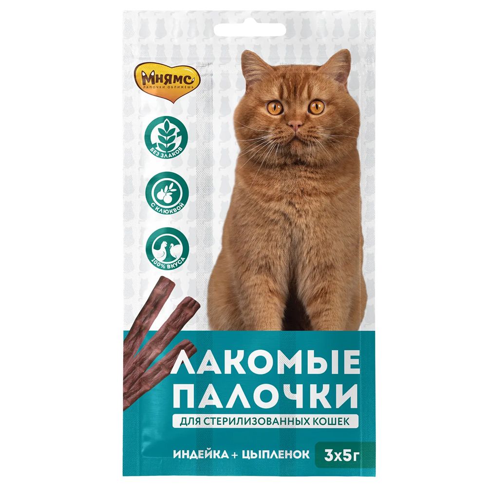Лакомство для кошек Мнямс для стерилизованных Лакомые палочки с индейкой и цыпленком 13,5 см 3х5 г**