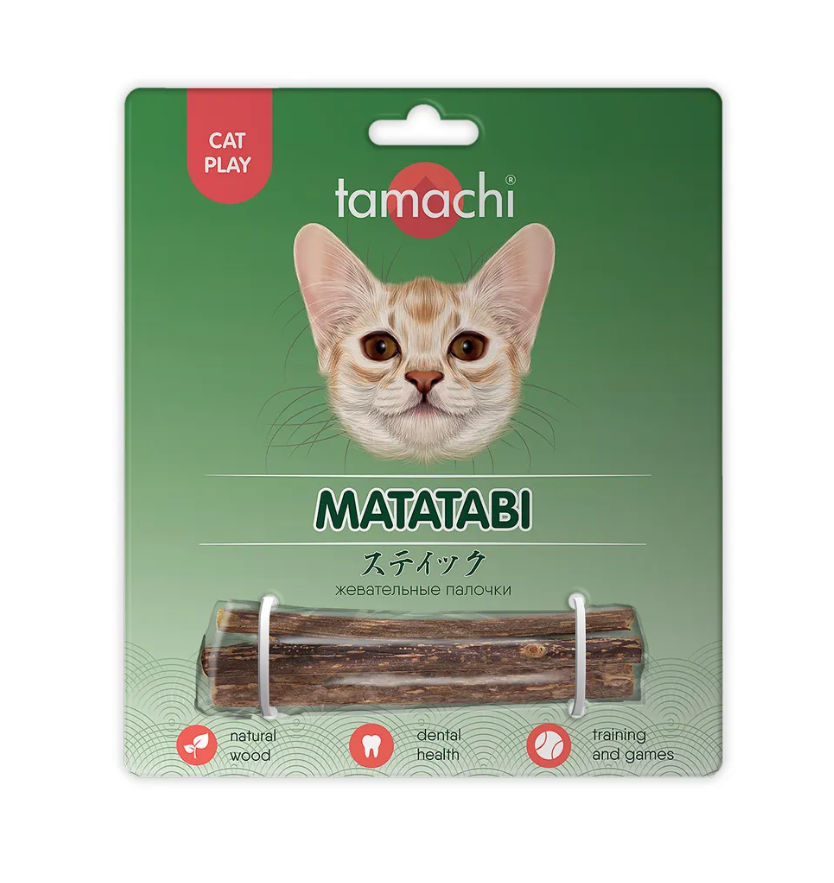 Жевательные палочки изготовлены из 100% натурального японского дерева Мататаби для продолжительной игры и поднятия настроения кошки.