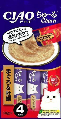 Лакомство для кошек INABA Ciao Churu Инаба Пюре с тунцом Магуро и устрицей 4х14 г**