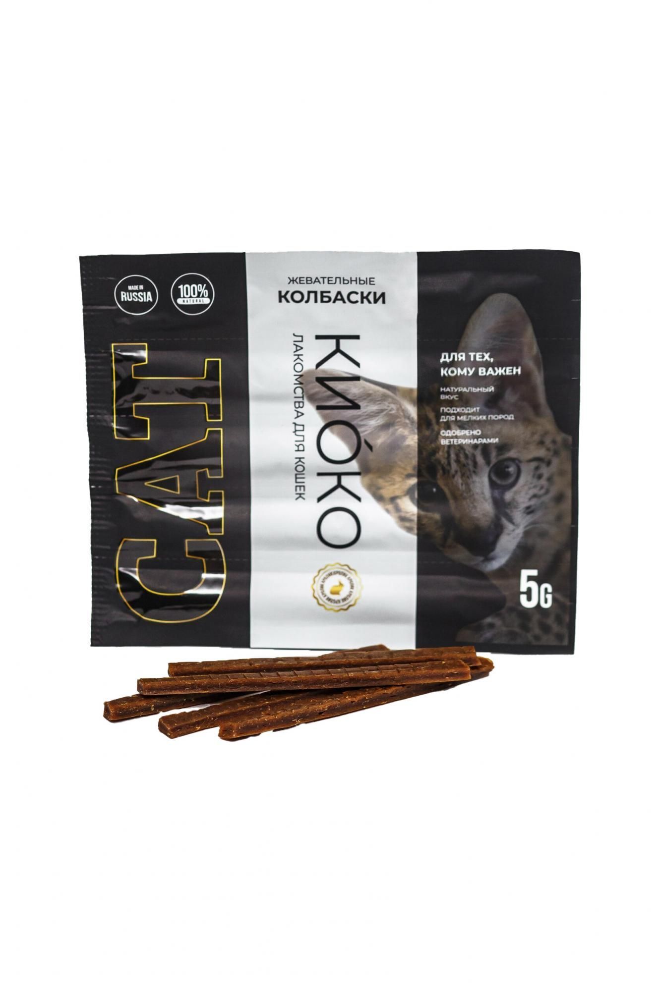 Лакомство для кошек КИОКО Жевательные колбаски из мяса кролика 25 г**
