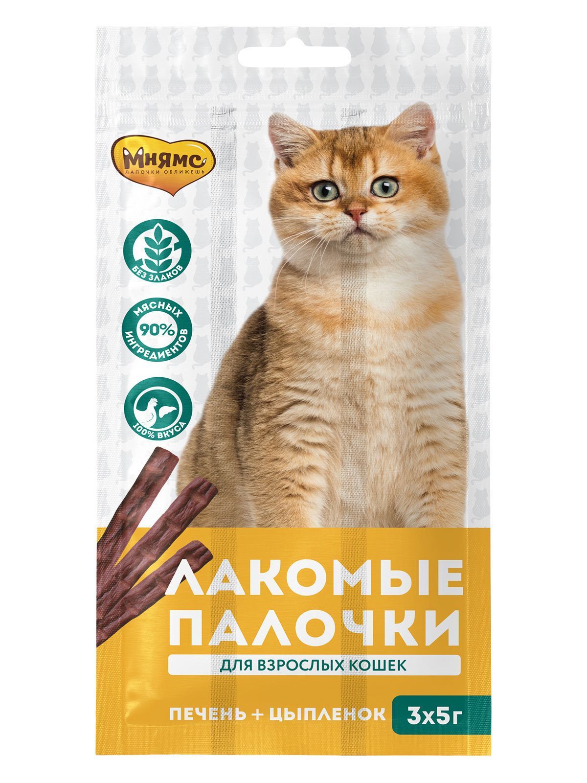 Мнямс д/к лакомые палочки с цыпленком и печенью 3*5г