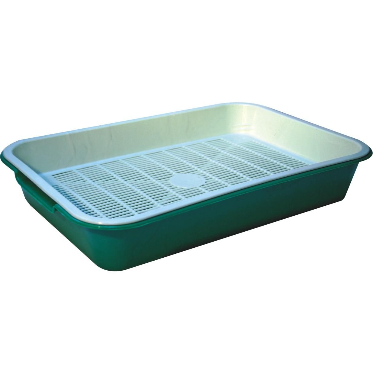 Лоток на низких ножках с решеткой для использования в качестве туалета для кошек.