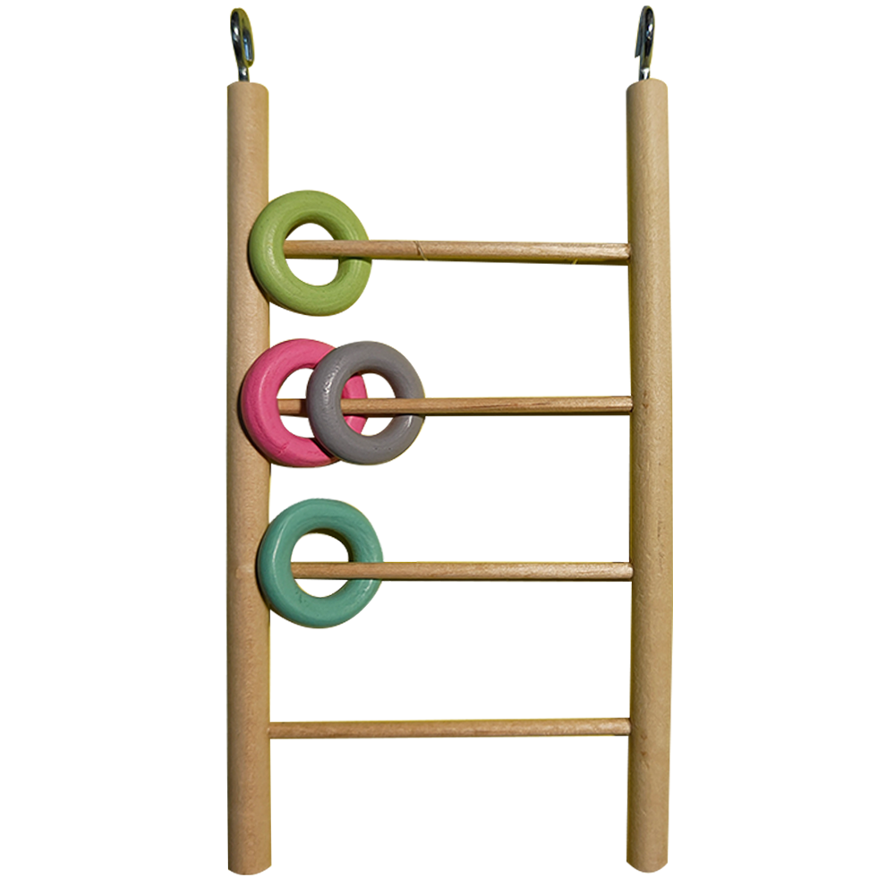 Игрушка для попугаев лесенка 4 ступени с кольцами 16*8 см