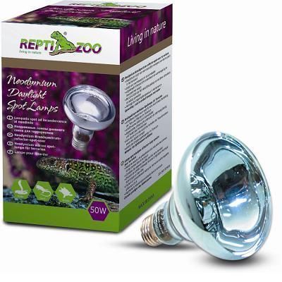 Дневные лампы служат для освещения и обогрева террариумов. Содержат в спектре УФ-лучи А-типа. Колба с неодимовым покрытием, благодаря чему излучаемый спектр соответствует естественному солнечному спектру. За счет нанесенного на колбу неодимового покрытия создает в террариуме имитацию солнечного света