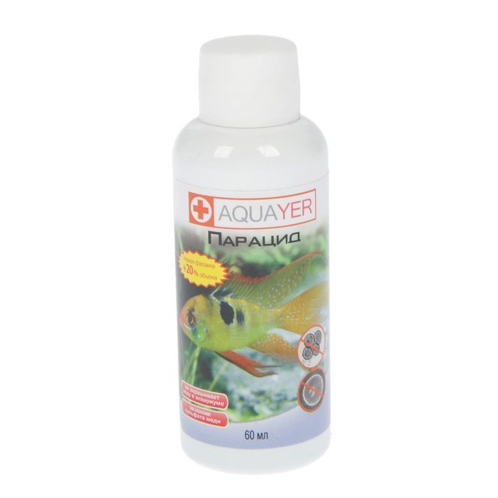 AQUAYER Парацид – эффективно уничтожает Oodinium, Cryptocaryon, Amyloodinium, Ichthyophthirius, и других эктопаразитов. В состав входят сульфат и хлорид меди.