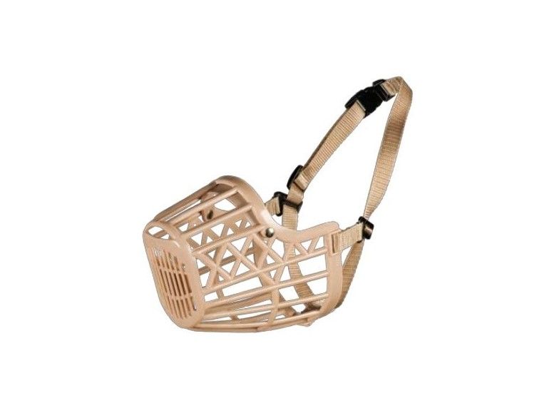 Пластиковый намордник прост в уходе: после прогулки его можно вымыть, высушить и использовать снова, он длительное время не потеряет свой вид. Такой намордник довольно крепок и не подвергается обмораживанию, а это важно при зимних морозных прогулках, в отличие от металлического намордника, использование которого при сильном холоде не очень удобно.