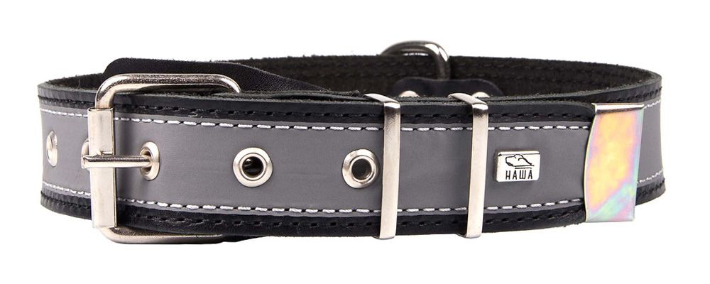 Ошейник для собак Наша Ручная работа 35 средний светоотражающий 53-68 см*35 мм кожа**
