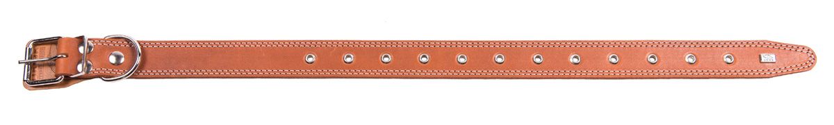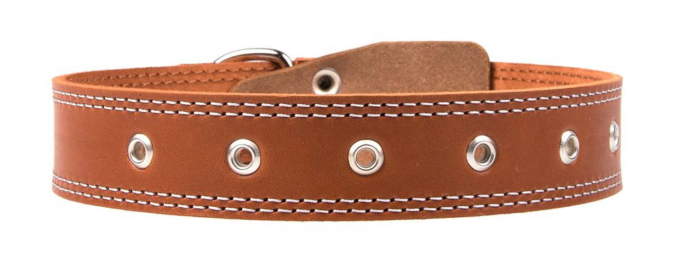 Однослойный ошейник из натуральной кожи, прошит декоративной строчкой, отверстия укреплены металлической блочкой, полукольцо у пряжки.