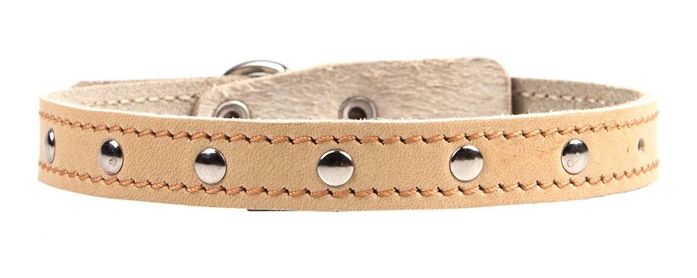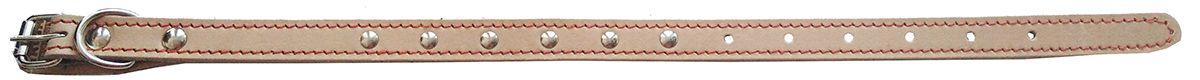 Однослойный ошейник из натуральной кожи, украшенный металлическими заклепками, прошит декоративной строчкой, полукольцо у пряжки.