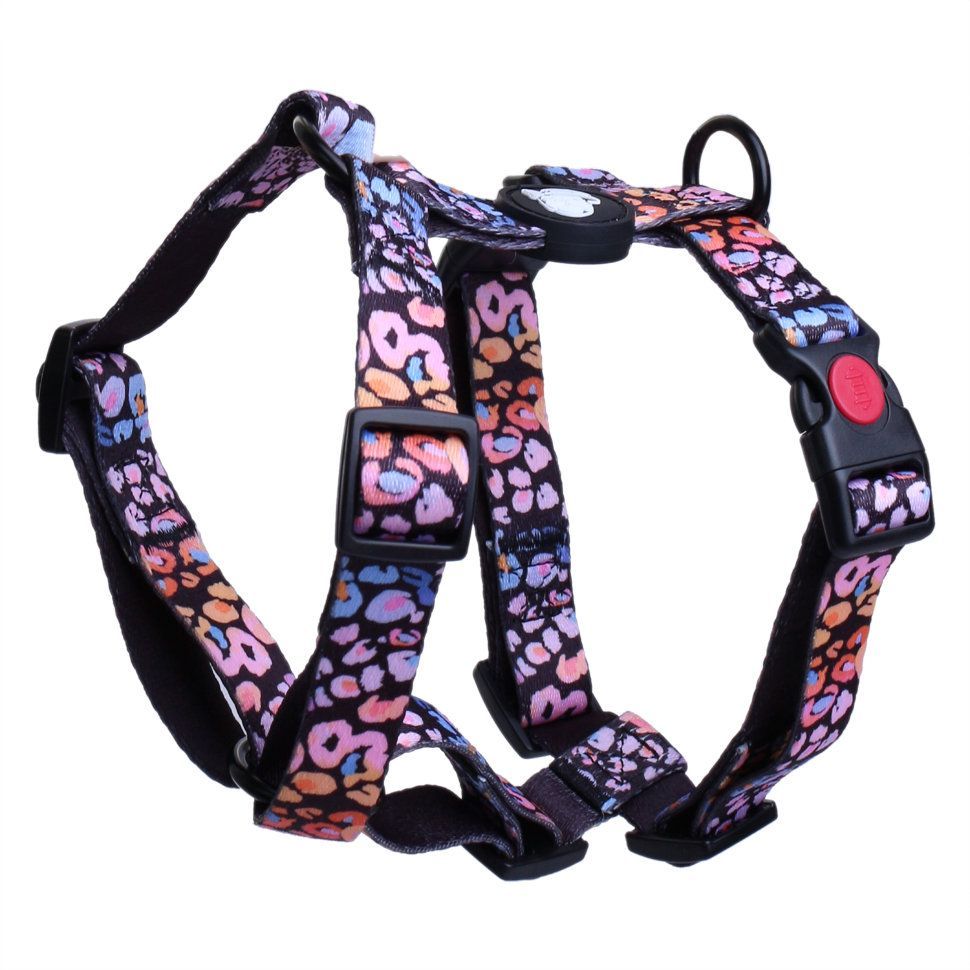 Яркая и стильная шлейка для собак, предназначена для безопасного и комфортного выгуливания питомца, она может быть использована во время прогулок как альтернатива ошейнику. Размер легко регулируется с помощью защелок.
