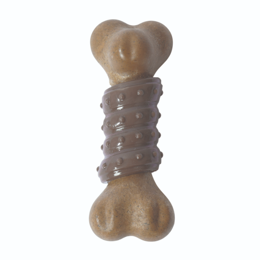 Изготовлена из прочного нейлона и натуральной сосновой муки, она обеспечивает безопасное и длительное жевание, способствуя здоровью зубов вашего питомца. Дополнительно игрушка оснащена элементом из резины, который делает процесс жевания еще более приятным и полезным.