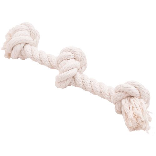 Прочный хлопковый грейфер с тремя узлами для поддержания здоровья зубов и активных игр с собакой. Идеально подходит для собак средних пород.