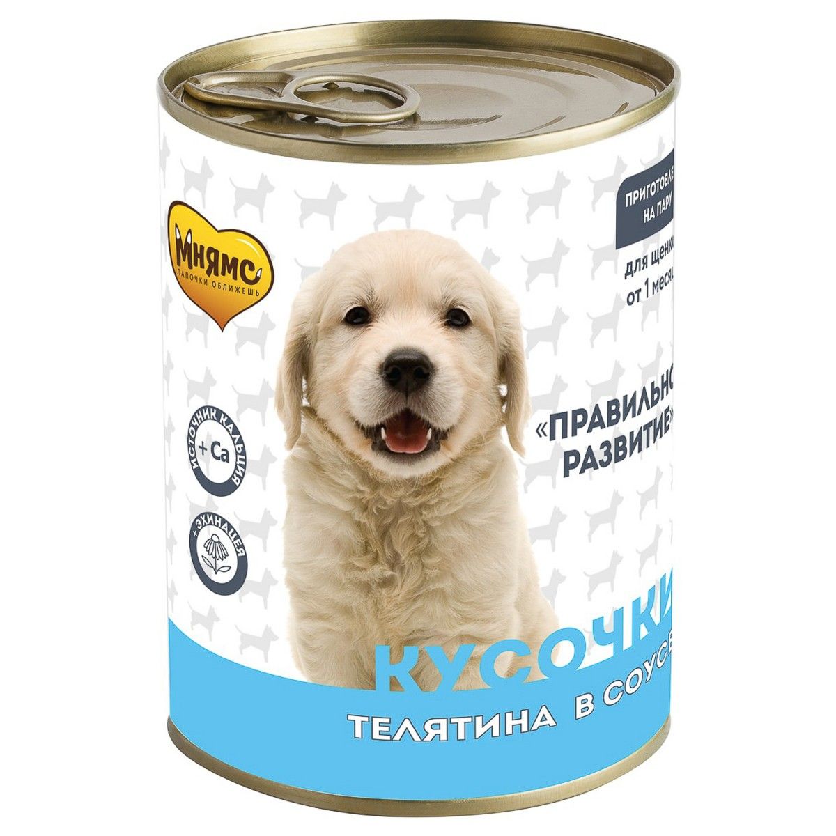 Корм для щенков Мнямс "Правильное развитие" кусочки с телятиной в соусе конс. 400 г ж/б**