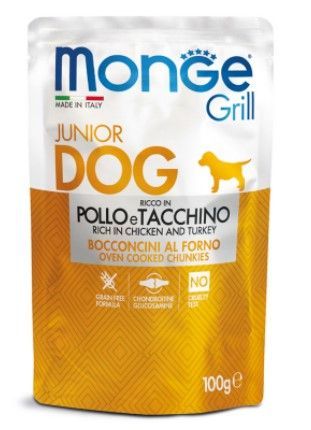 Корм для щенков Monge Dog Puppy&Junior CHICKEN TURKEY Монже влажный с курицей и индейкой 100 гр. пауч *