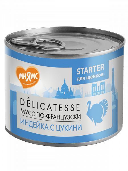 Корм для щенков Мнямс "Мусс по-французски" паштет из индейки с цукини конс. 200 г ж/б**