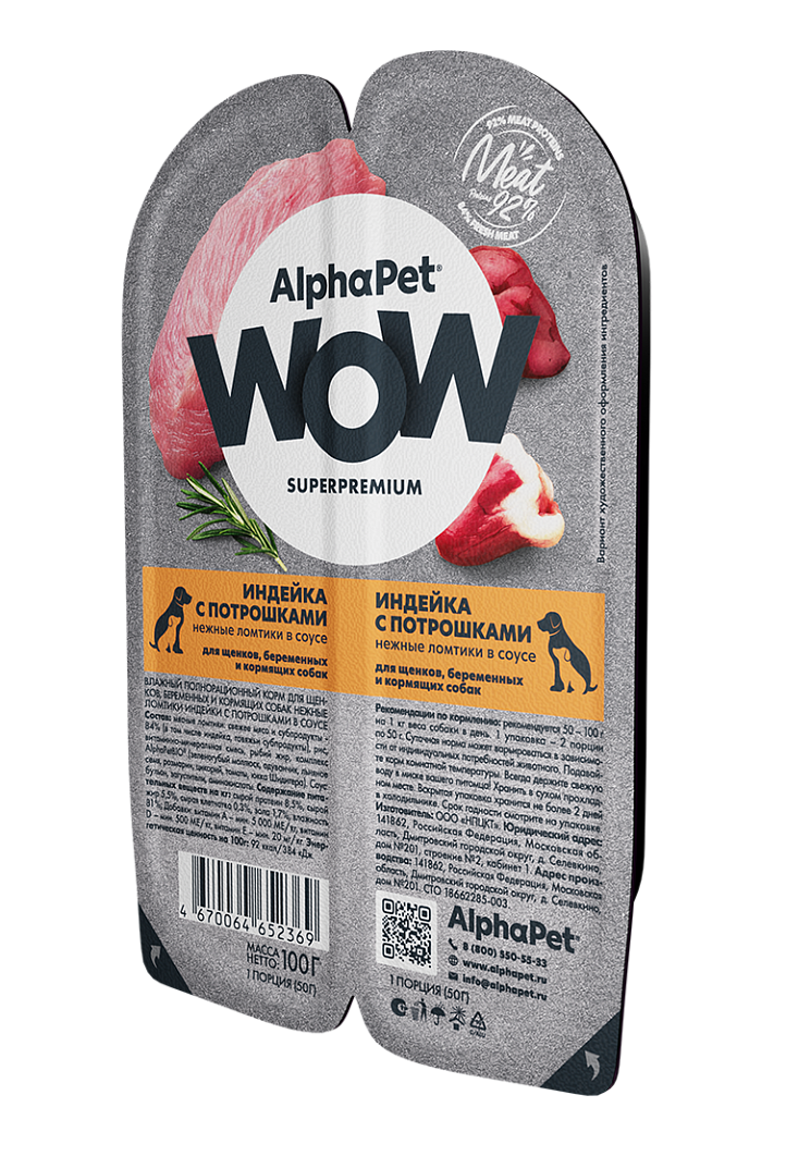 АльфаПет WOW д/щ Индейка с потрошками в соусе 100гр