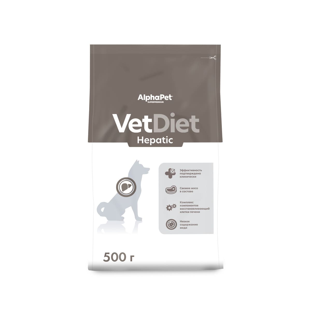 Сухой полнорационный диетический корм AlphaPet VetDiet для взрослых собак всех пород рекомендованный при заболеваниях печени