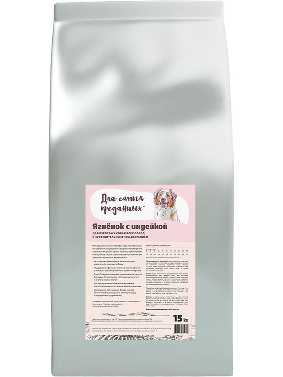 Корм для собак Для Самых Преданных для всех пород с чувствительным пищеварением ягненок и индейка 15 кг сух. мешок**