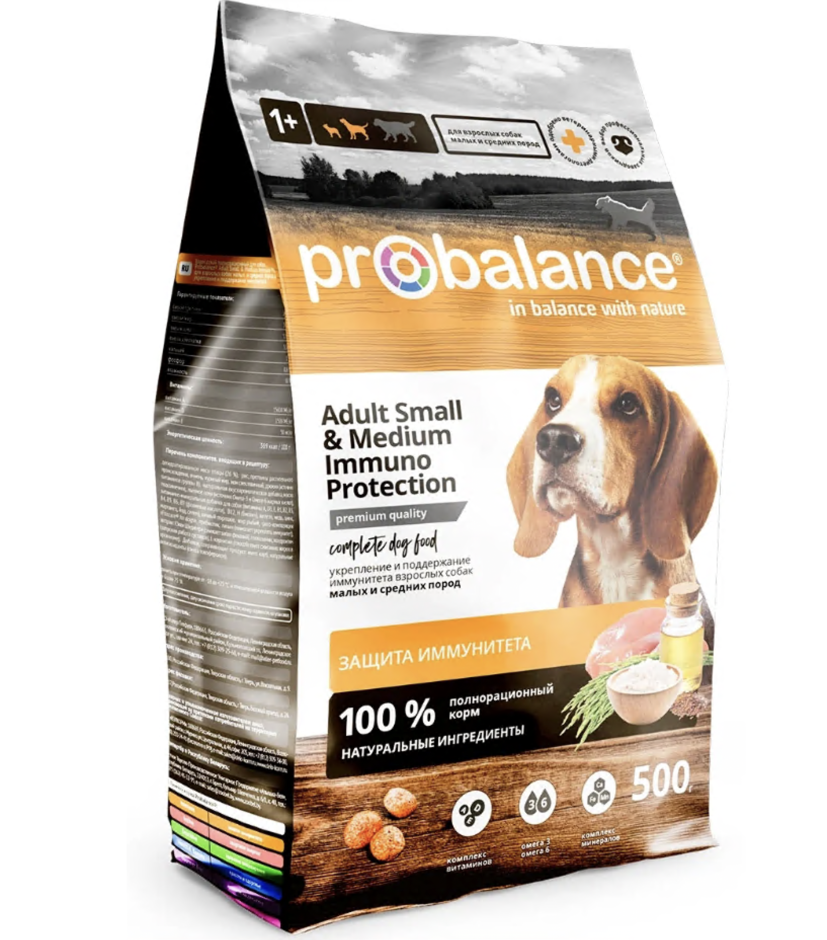 Корм для собак ProBalance Adult Small&Medium Immuno Protection Пробаланс для мелких и средних пород защита иммунитета 500 г сух. пакет**