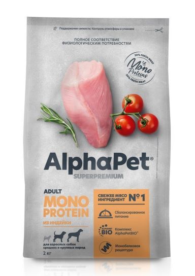 АльфаПет д/с средних и крупных пород MONOPROTEIN 2 кг индейка