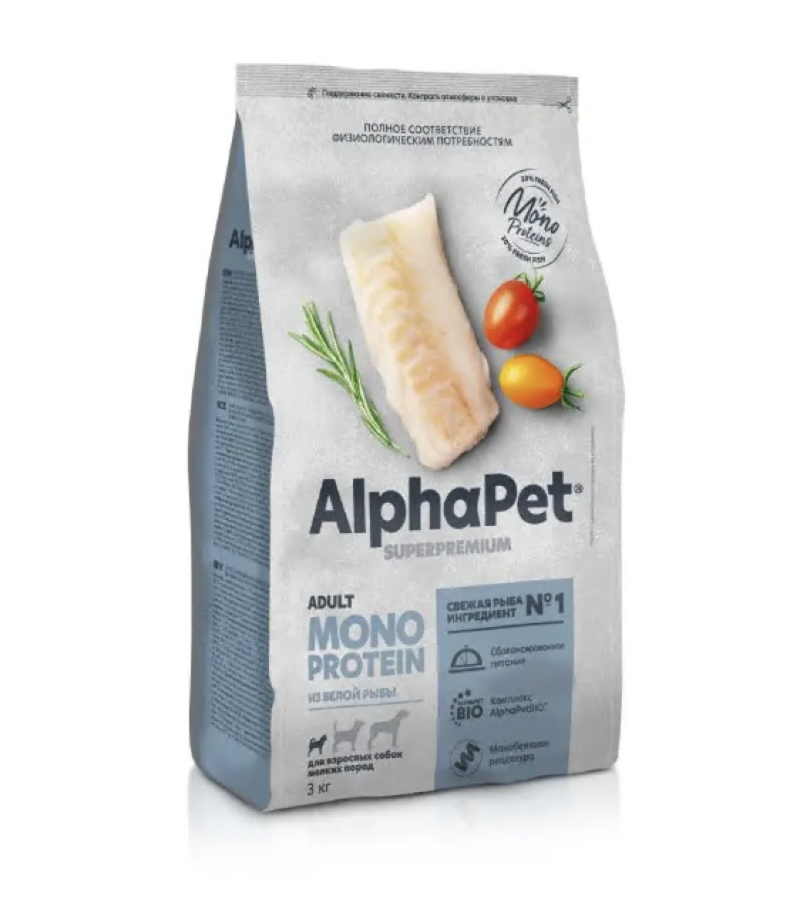АльфаПет д/с мелких пород MONOPROTEIN 3 кг белая рыба