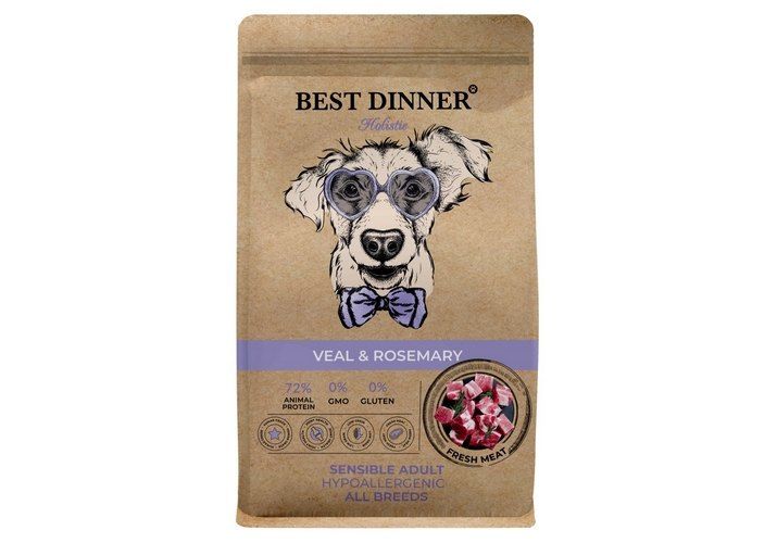 Полнорационный гипоаллергенный корм Best Dinner Holistic с телятиной и розмарином создан специально для собак с особыми потребностями.