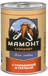 Корм для собак Мамонт Стандарт с говядиной и гречкой конс. 970 г ж/б**